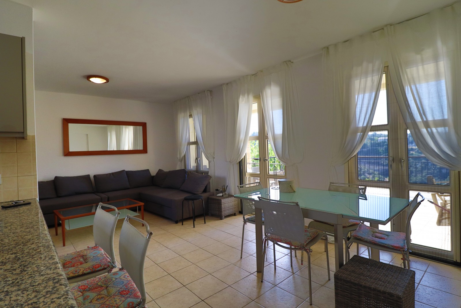 Step outside to a large, private veranda that showcases spectacular vistas across the valley and out to the sea. A substantial private garden offers the potential for a swimming pool, adding to the property’s appeal. The current owners have meticulously maintained the apartment, including fresh paintwork, a new kitchen, and an upgraded bathroom—making it ready for immediate occupancy.