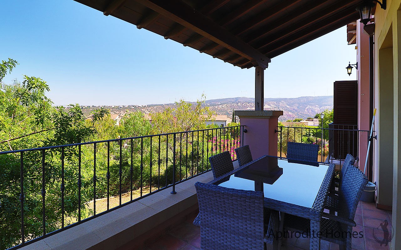 The main balcony, off the lounge area, is very spacious with stunning panoramic views across the mountains and out to sea with plenty of room for outside dining and lounging. The property is being sold by the current owners fully furnished with all luxury fixtures and fittings and is sold at an excellent price to sell. The apartment is part of the official rental company here at the resort and offers the new buyer a very good potential rental return making it an excellent investment. The property is well priced and viewings are highly recommended by Aphrodite Homes and are strictly by appointment only.