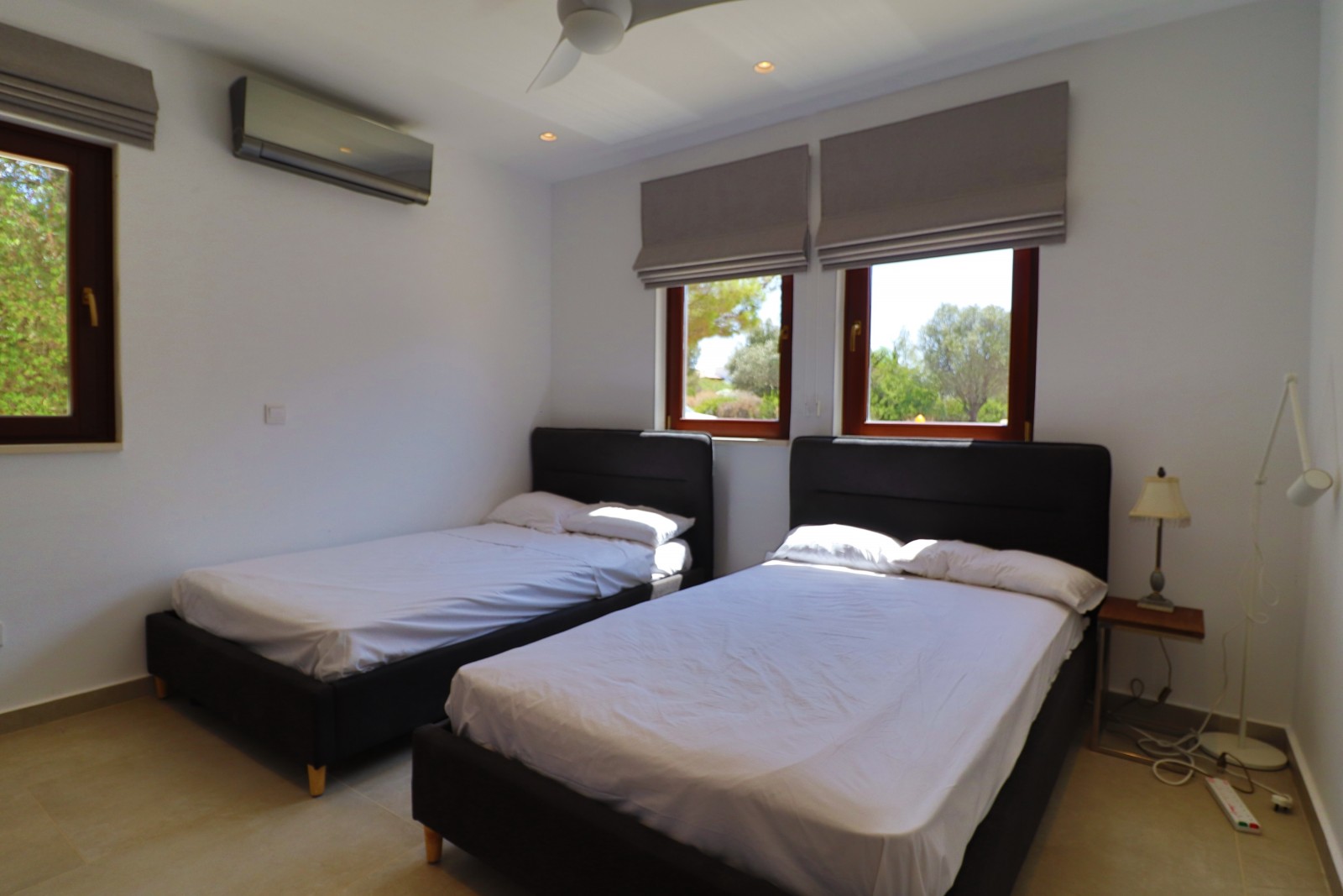 The ground floor accommodates two double bedrooms that share a recently fitted luxury. The other three double bedrooms are situated on the first floor featuring a large walk-in showers, while the stunning master bedroom includes its own luxury ensuite, also renovated to a very high standard. The whole villa is fully air conditioned which are split units providing heat in the short winter months if needed.
