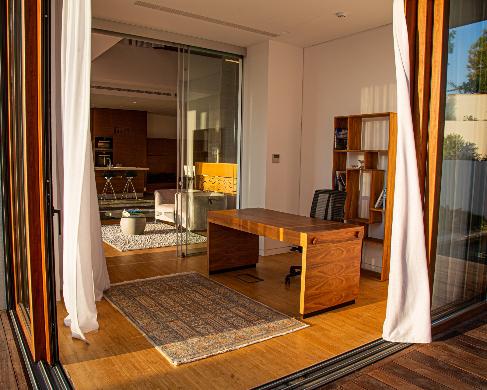 The heart of the villa is the 11-metre-high central atrium. This space connects virtually every space in the house providing a feeling of light and space with a spectacular 5-level staircase with two bridges. The lower level incorporates a further two double bedrooms and an independent studio apartment and also a huge recreation room allocated as a cinema and snooker room. The lower level completes with a wine cava and gym room.